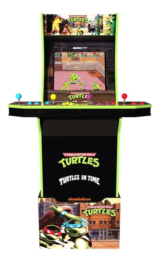 Cowabunga! Team up with the half-shell heroes in Konami's Teenage Mutant Ninja Turtles Arcade Machine. 2 arcade games are included: Teenage Mutant Ninja Turtles and Turtles in Time. Fight your way through the Foot Clan, save April from Bebop and Rocksteady and defeat the all-time big bad, Shredder. Play on your own or with up to 4 friends with the iconic 4 player game control deck.